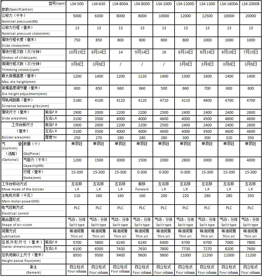 Optional:tonnage,die holding device ,buffer and air cushion (air cushion stroke adjustable and closing function can be added)